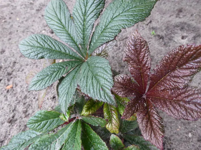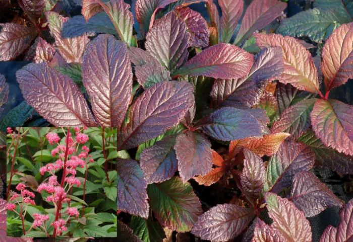 Rodgersia 'Bronze Peacock' oorspronkelijk afkomstig uit China, Korea en Japan, heeft een compacte groeiwijze met een weelderige vertakking.