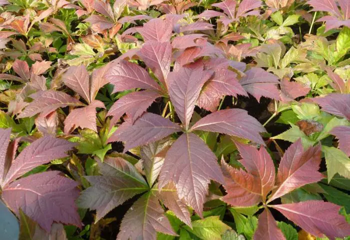 Rodgersia podophylla 'Braunlaub' lijkt erg op R.podophylla 'Rotlaub'.