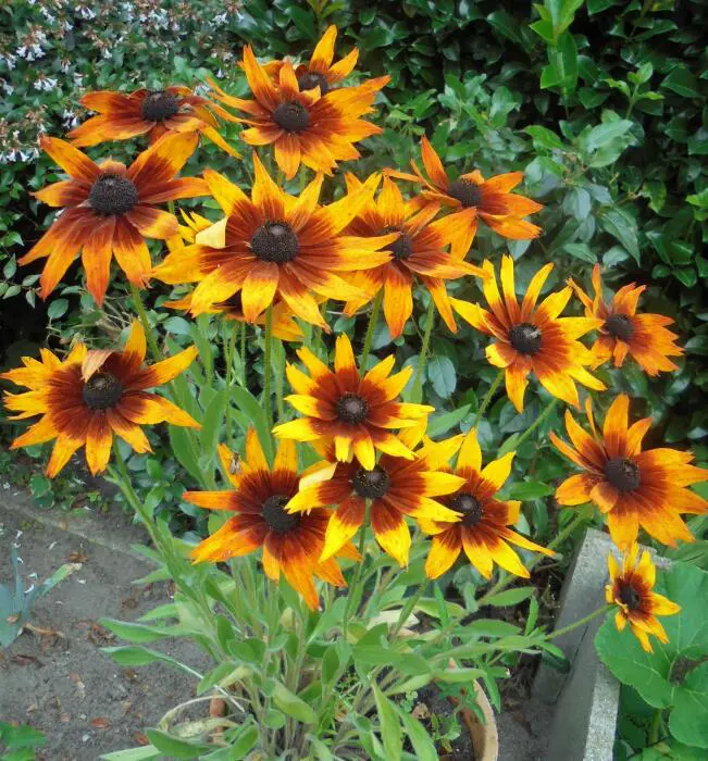 Naar gelang de cultivar bloeien ze geel, rood, bruinrood, kersrood of gemengd, tussen de 50 en 100cm hoog.