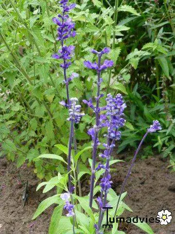 Salvia farinacea 'Victoria' is een vaste plant dat eerder als éénjarige gekweekt wordt, met wat geluk kan men ze overhouden.