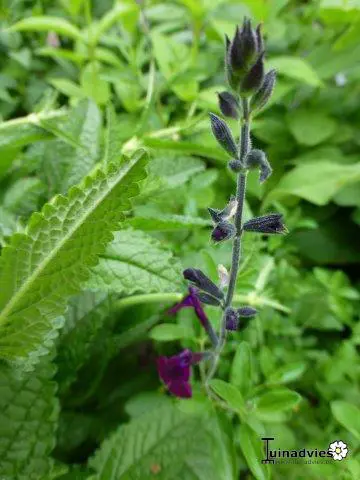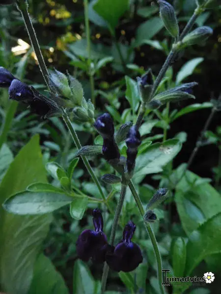 Vormt een mooi struikje met donkergroene glanzende blaadjes en donker fluweelpurper/violette bloemen.