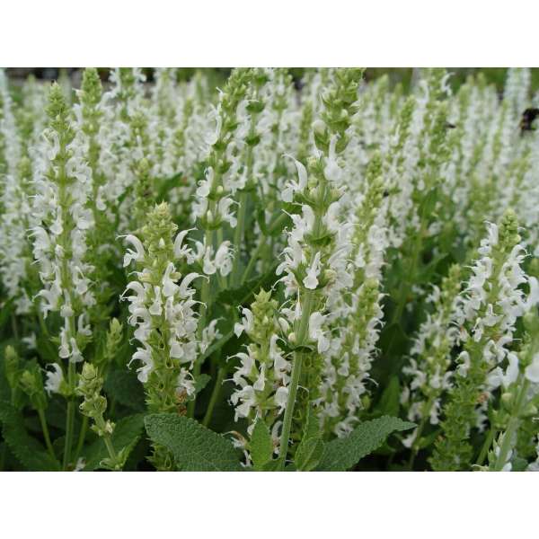 Salvia nemorosa 'Schneehügel' is een gemakkelijke plant dat ook nog lang bloeit en keurige pollen vormt.