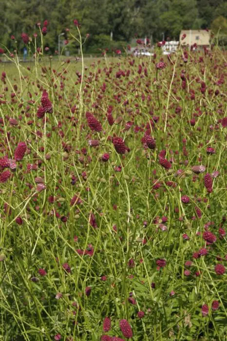 Sanguisorba 'Blackthorn' is een bossige plant met een rijke, sierlijke bloei in het hartje van de zomer met puperrode dichte aren aan stevige hoge stengels die niet omvallen.