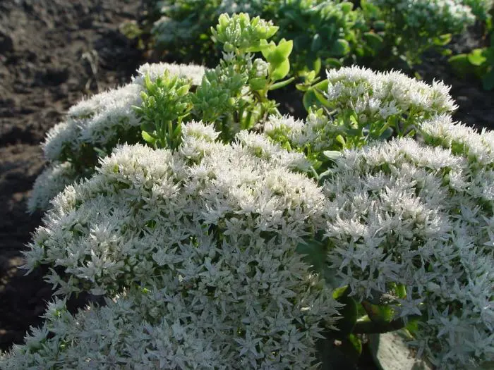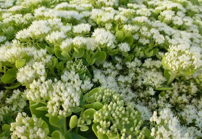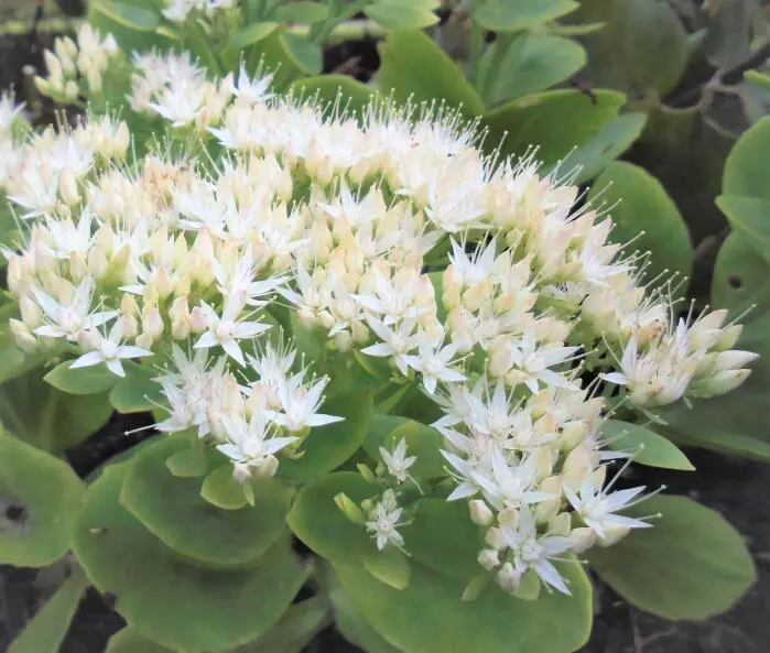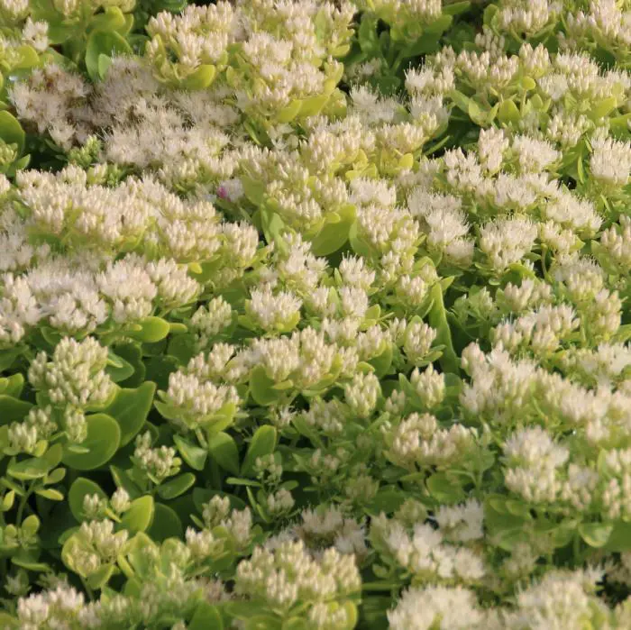 Sedum spectabile 'Iceberg' is een goede plant voor de border, vroeg in de zomer heb je al een mooie plant met groene bloemen die naarmate de zomer vordert naar wit verkleuren en een mooie wintersilhouet hebben.