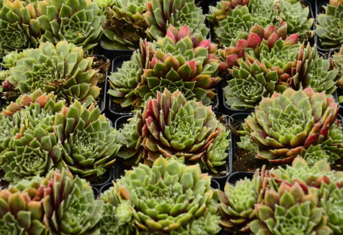 Sempervivum erythraeum 'Velvet Red' is een zodevormende plant die kleine groen tot roodbruin verkleurende rozetten vormt.