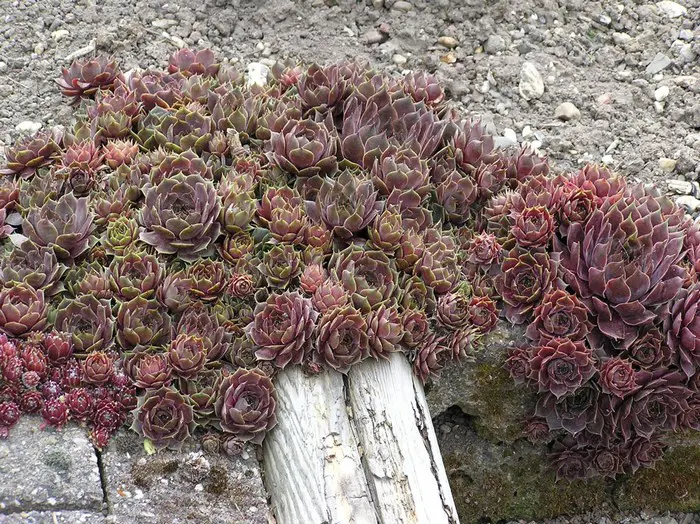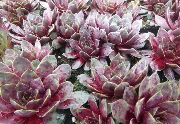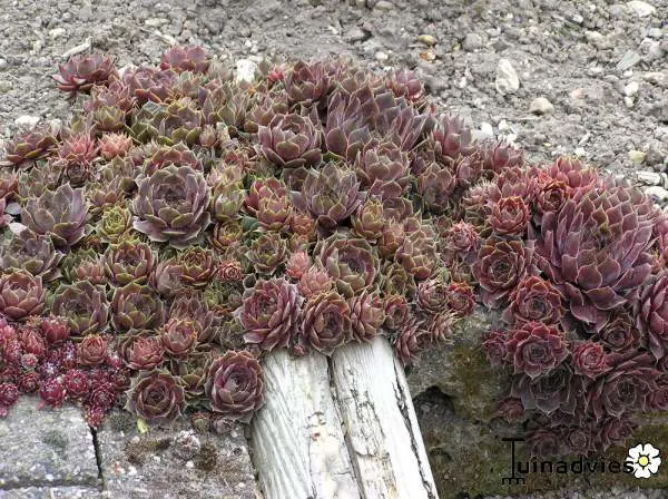 Zodevormende plantjes die rozetten vormen glanzende rode bladeren met aan de basis groen, uiterst geschikt voor rotstuinen tussen stenen die door de zon erg heet kunnen worden, waar zelfs weinig vocht komt.