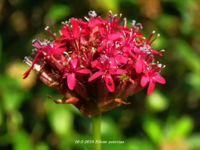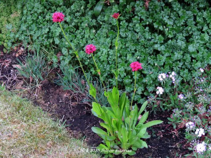 Silene asterias vormt een rozet van frisgroene bladeren waaruit stevige stengels groeien.