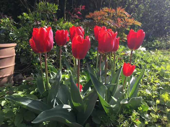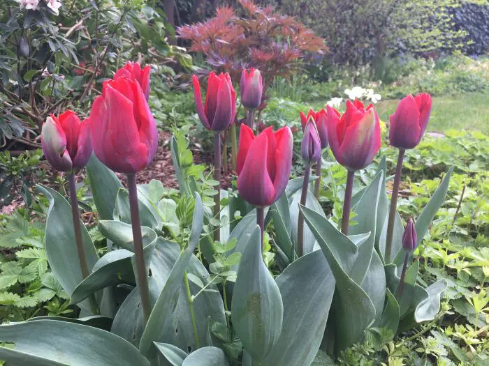 Tulipa 'Couleur Cardinal' is een erg oude variëteit met een donker kardinaalrood bloemblad met paarse schijn. Resistent tegen slechte weersomstandigheden.