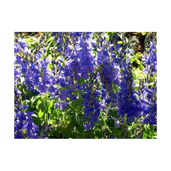 Veronica austriaca 'Knallblau' bloeit overvloedig met knalblauwe aren.