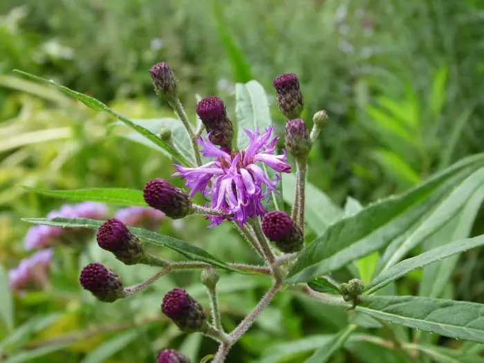 Vernonia crinita 'JS Betty Blindeman' zijn stevige, grote planten met bovenaan de stengel bloemtuilen van pluizige paarse pompons.