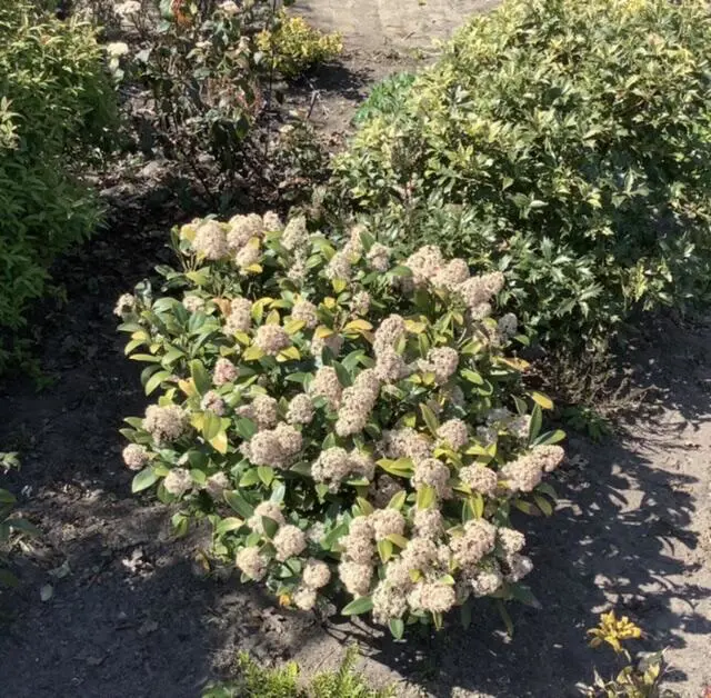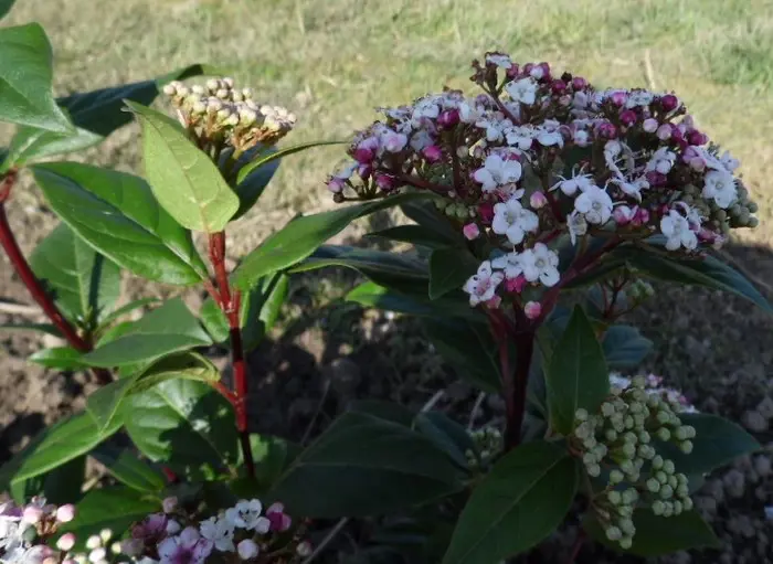 Viburnum tinus 'Spirit' is een compacte dichte struik met donkergoene bladeren en kleurrijke donkerroze bloemknoppen vanaf eind november. De bloeiwijzen bieden een mooie variatie die in hartje winter van knalroze naar puur wit gaat.