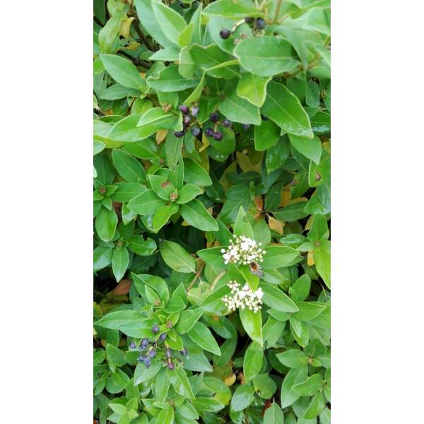 Viburnum tinus is een aantrekkelijke heester vanwege de trosjes roze bloemknoppen die met witte bloempjes openbloeien. De rozerode bloemknoppen hangen reeds al vanaf oktober aan de plant. Na de bloei volgen de zwarte bessen.