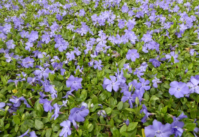 Vinca minor 'Anna' is een uitstekende tuinplant voor moeilijke plaatsen. Hij vormt een groenblijvende en dichtbegroeide bodembedekker, blijft compacter dan de soort.