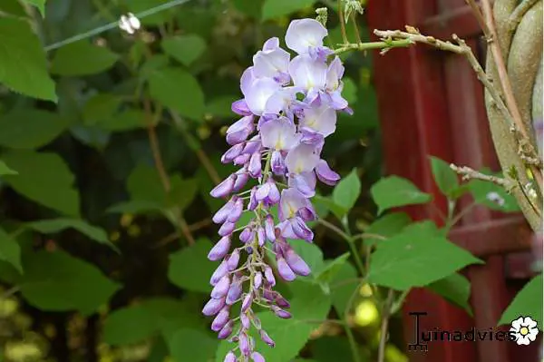 Deze blauwe regen is linksdraaiend (van onder naar boven bekeken), dus tegen de wijzers en tegen de zon in. Dit kan als controle dienen bij uw aankoop.