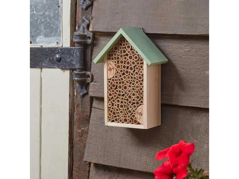 Breng leven en biodiversiteit in je tuin met dit stijlvolle insectenhotel voorzien van een groen dak. Dit decoratieve en functionele bijenhotel is speciaal ontworpen voor de solitaire metselbij, een onmisbare helper voor een gezonde en bloeiende tuin.