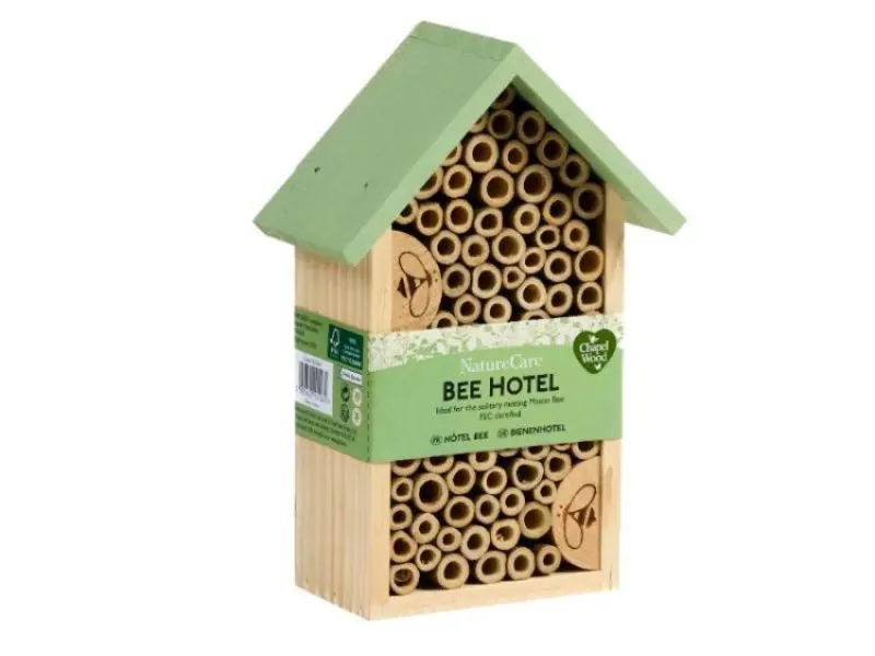 Dankzij de combinatie van hout uit duurzaam beheerde bossen en bamboe is dit bijenhotel niet alleen duurzaam en milieuvriendelijk, maar ook een mooie natuurlijke toevoeging aan elke tuin. Het draagt actief bij aan de bestuiving van bloemen en fruitbomen en helpt zo de biodiversiteit te versterken.