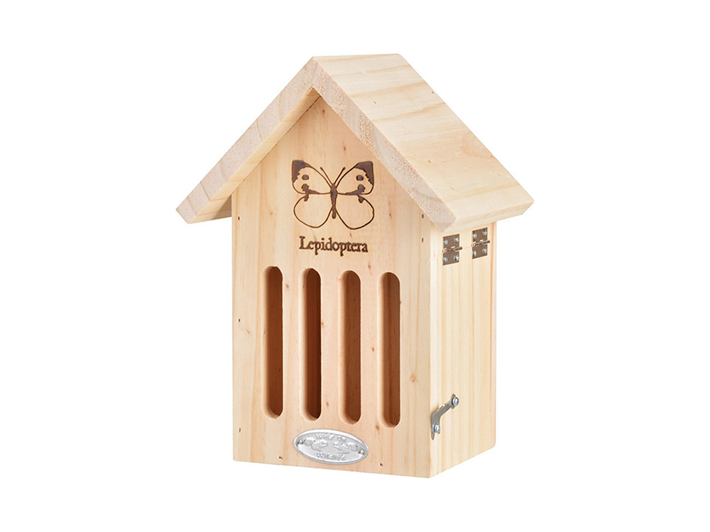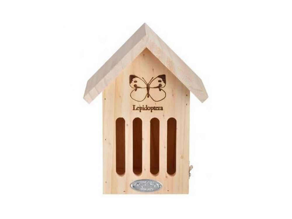 Deze naturel houten nestkast van Esschert Design met brandmerk is op zich al een mooi extraatje in je tuin. De vlinderkast met 4 sleuven is ontworpen als een miniatuurhuisje, geliefd bij vlinders zoals de kleine vos, dagpauwoog en citroenvlinder die graag in een gat kruipen om te schuilen tegen het barre weer. De vlinderkast doet ook dienst als overwinteringsplaats.