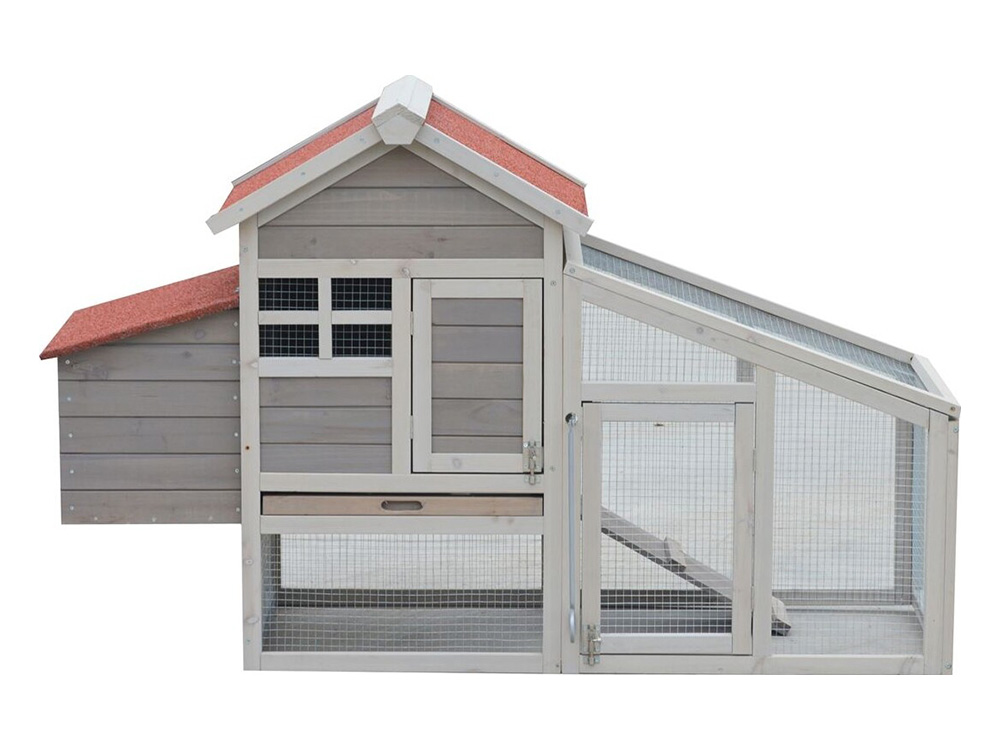 Verder beschikt dit handige hok over een uitneembare mestlade en een houten loopplank om het nachthok te bereiken. De toegang van het binnenhok naar het buitenhok kan je afsluiten (bv. bij kou, schoonmaken, etc). De ren kan worden afgesloten door middel van een deurtje in het kippenhok. De buitenren is onderaan volledig open zodat de kippen lekker op het gras kunnen scharrelen.