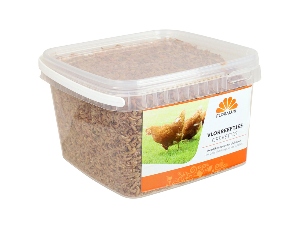 Trakteer jouw kippen op deze lekkere vlokreeftjes, ze zuller er dol op zijn! Vlokreeftjes zijn een uitstekende aanvulling op de dagelijkse behoefte aan dierlijke eiwitten die ze in hun natuurlijke omgeving in de vorm insecten en wormen verzamelen.