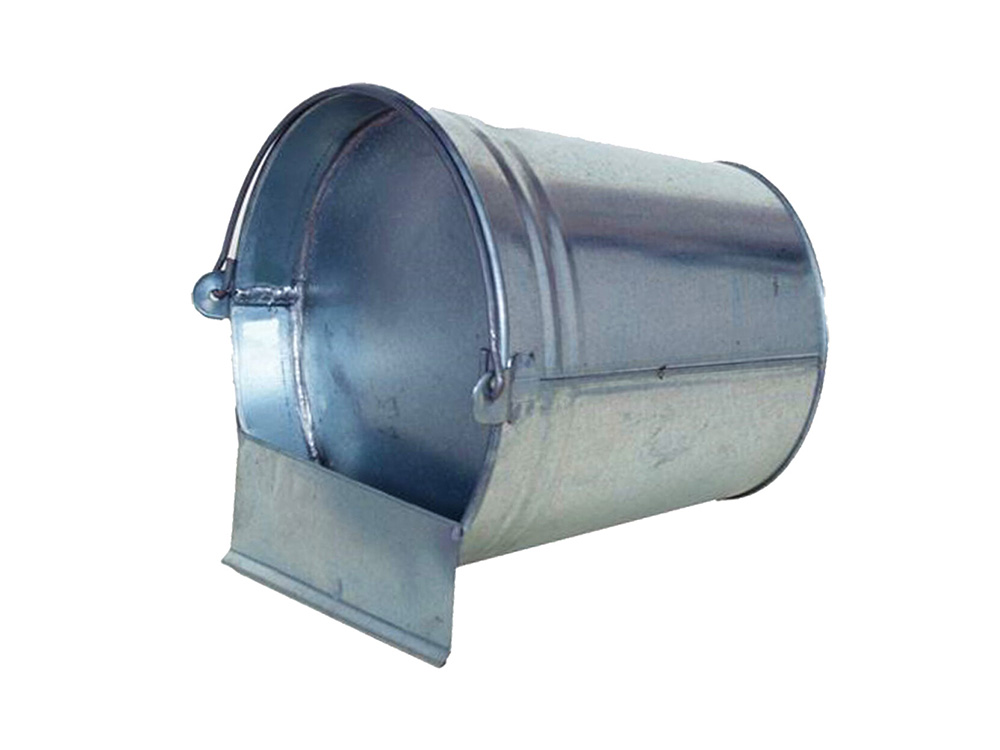 De constructie van de emmer zorgt ervoor dat hij niet leegloopt en dat de kippen of ander pluimvee het water via een smalle drinkopening kunnen opnemen.