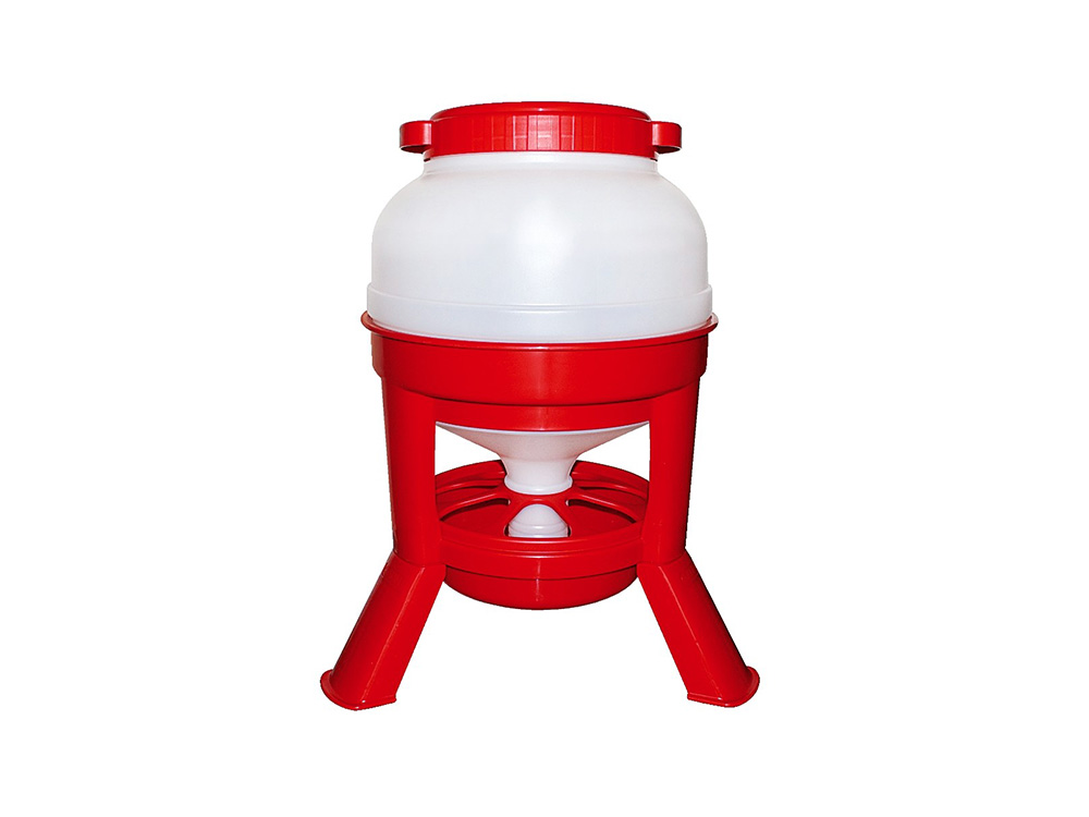 Kunststof voedersilo voor kippen, eenden, ganzen, fazanten,... met een afsluitbaar voederreservoir van 20 liter. Je kan de silo zowel met als zonder de poten gebruiken.