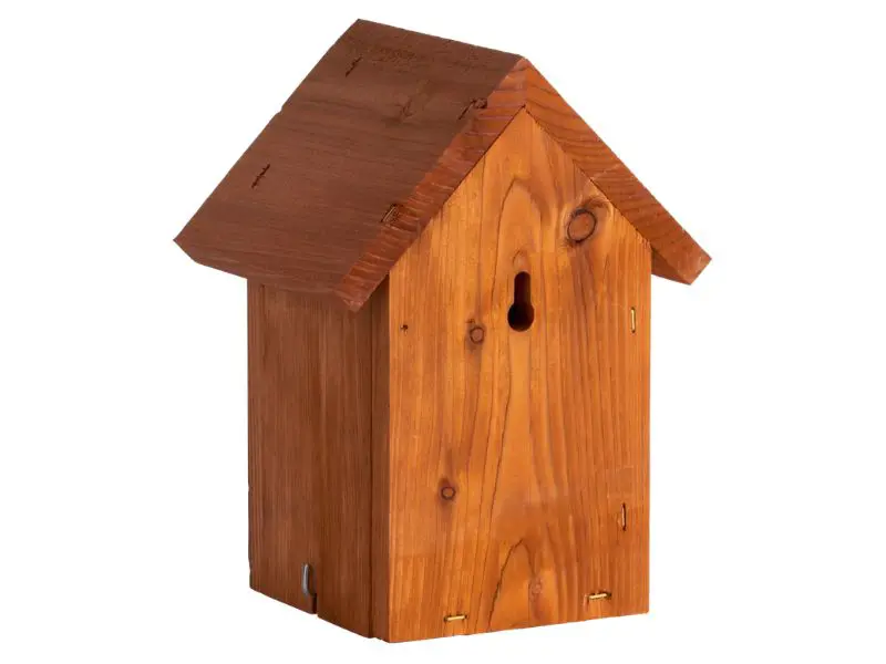 De nestkast is aan de zijkant voorzien van een deurtje om te nestkast eenvoudig te kunnen reinigen of te controleren.