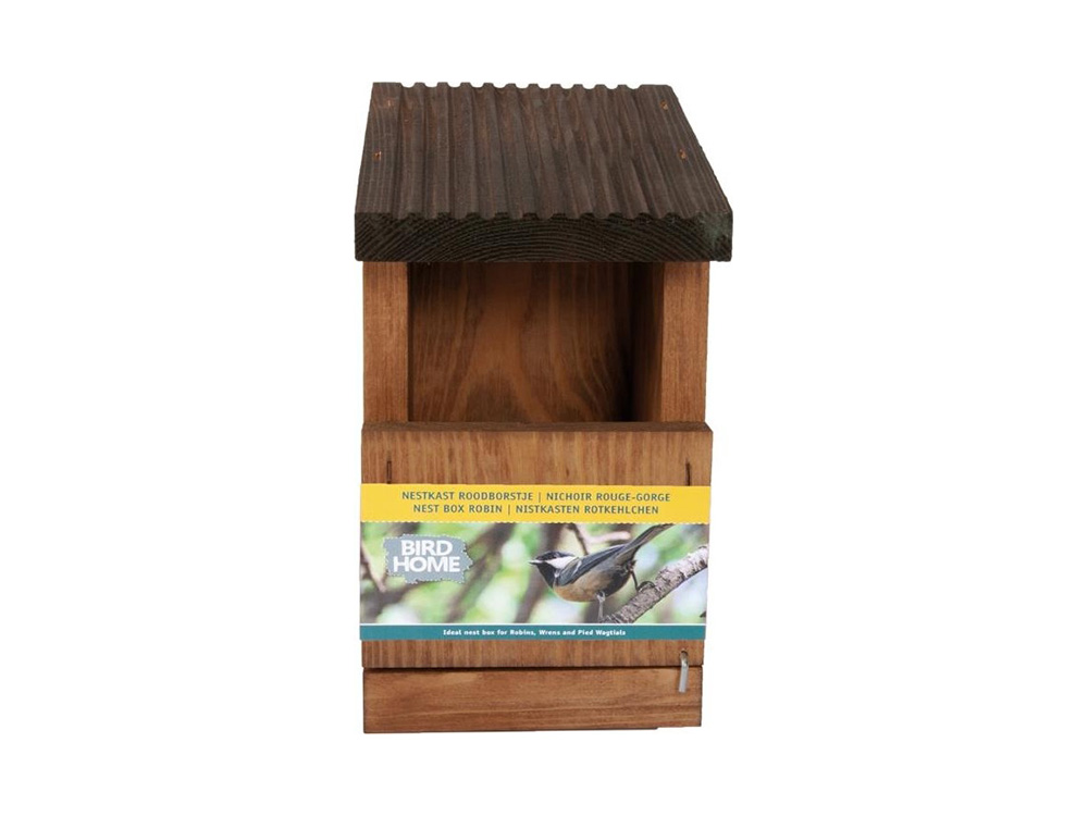 Het is een ideale nestkast voor roodborstjes, winterkoninkjes en witte kwikstaarten. Deze vogels zijn half holenbroeders en verkiezen een open constructie om hun nest in te bouwen.