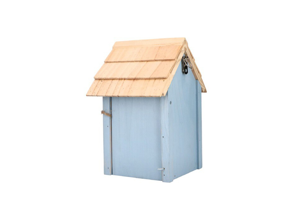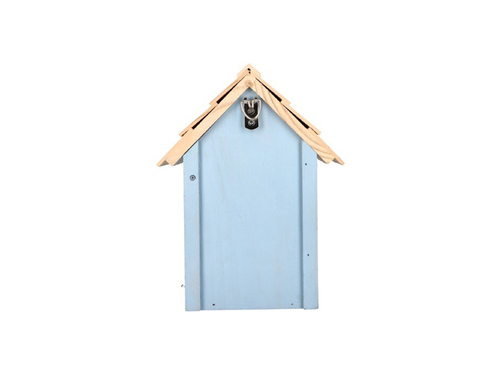 Het vogelhuisje heeft een invliegopening van 32 mm diameter en kan aan de zijkant eenvoudig worden geopend om schoon te maken. Achteraan is er een ophangoog voorzien om het op te hangen aan een boom of muur. Geschikt voor vele soorten vogels o.a. boomklevers, mussen en koolmeesjes.