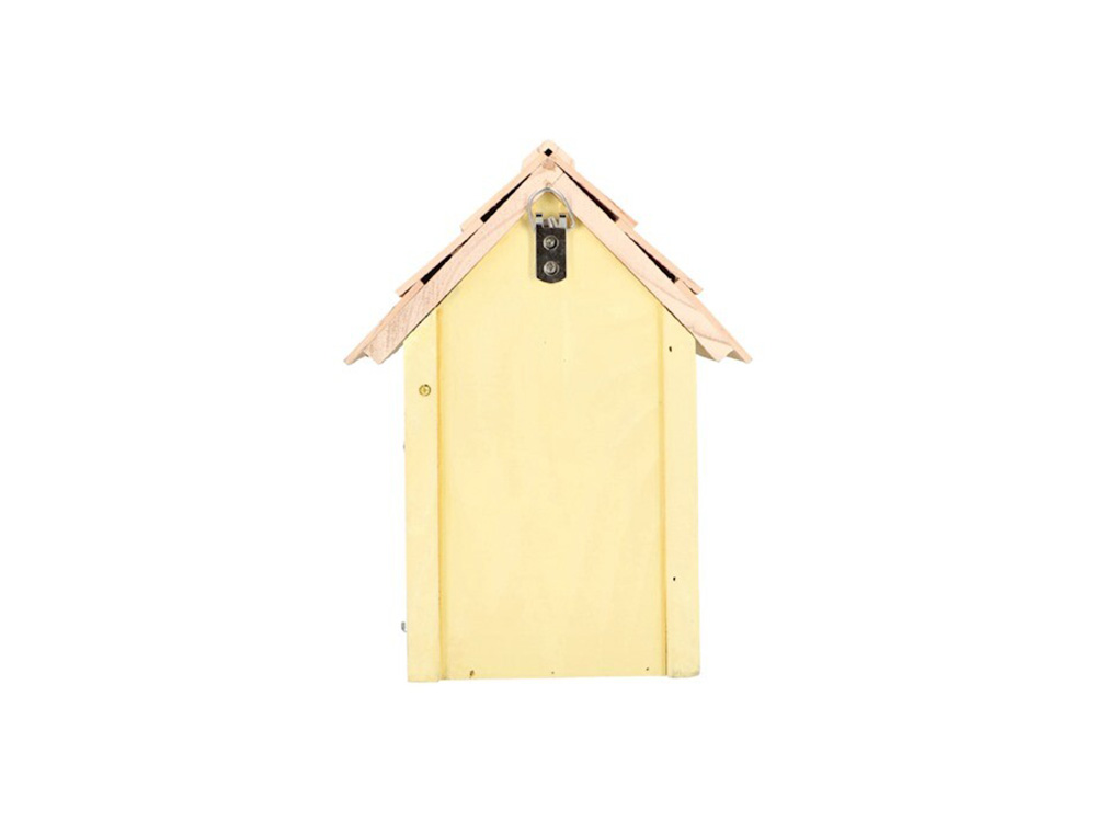 Het vogelhuisje heeft een invliegopening van 32 mm diameter en kan aan de zijkant eenvoudig worden geopend om schoon te maken. Achteraan is er een ophangoog voorzien om het op te hangen aan een boom of muur. Geschikt voor vele soorten vogels o.a. boomklevers, mussen en koolmeesjes.