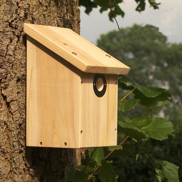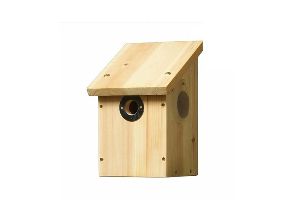 Duurzame houten nestkast, gemaakt van FSC-gecertificeerd hout, met cameraclip en plexiraampje voor optimale camerabeelden. Deze houten nestbox is gemaakt uit duurzaam traaggroeiend hout. Dankzij het gebruik van traaggroeiende houtsoorten heeft deze volledig natuurlijke kast geen nood aan enige vorm van chemische behandeling.