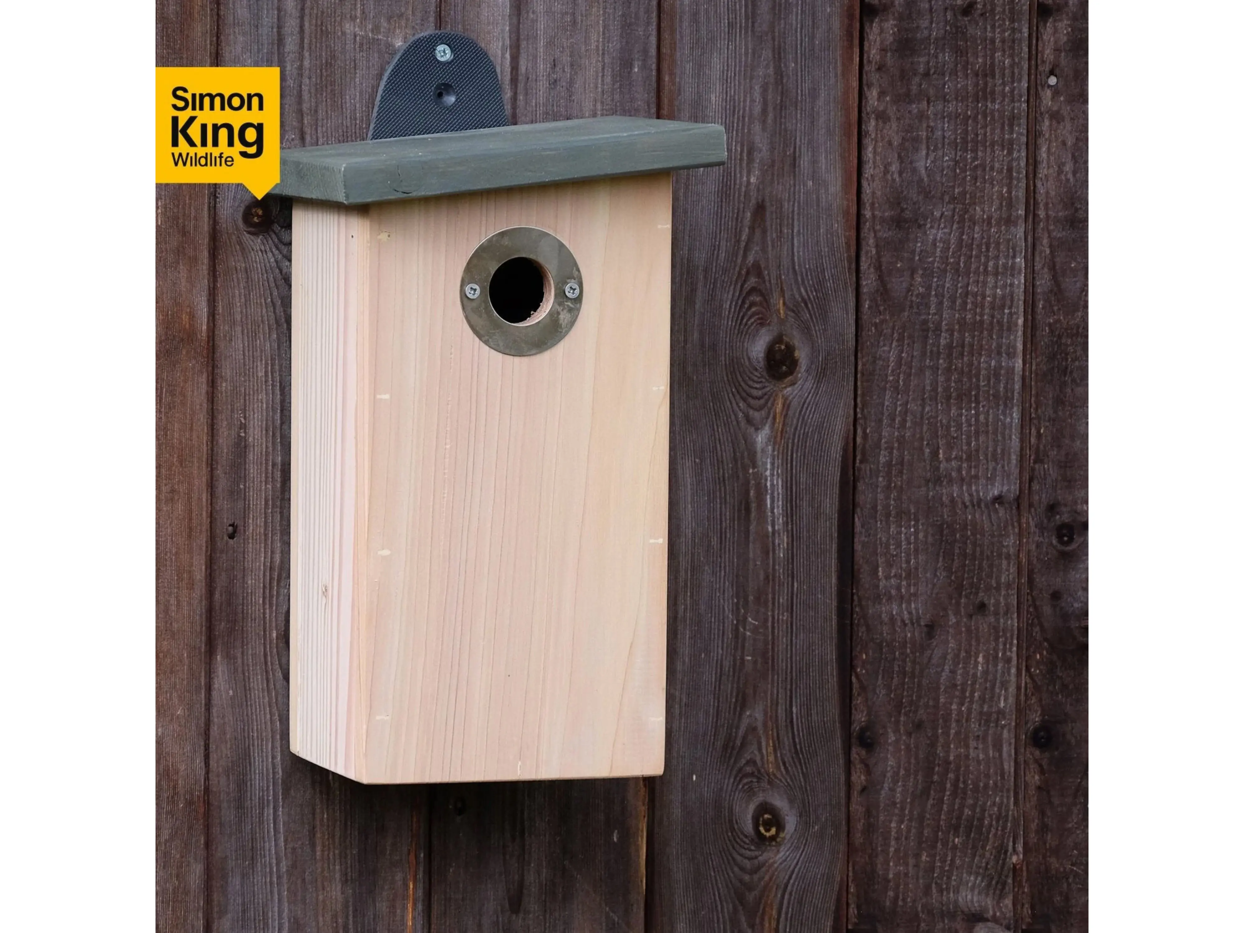 De nestkast heeft twee bevestigingspunten in duurzaam gerecycleerd kunststof waardoor ze stevig kan worden opgehangen. Bij het losmaken van de onderste schroef van de bovenste bevestigingsplaat, draait deze opzij waardoor je de kast volledig kan reinigen.