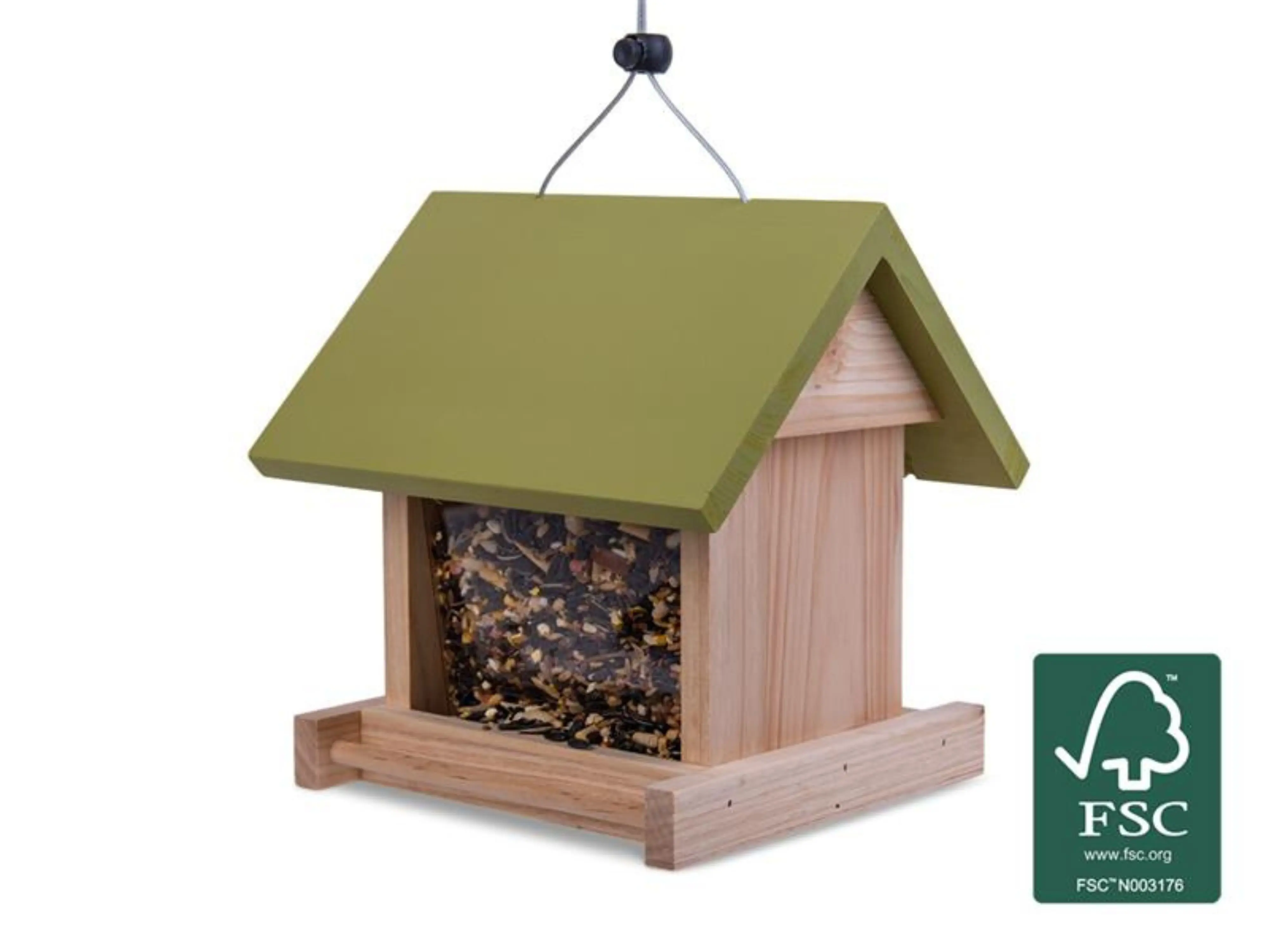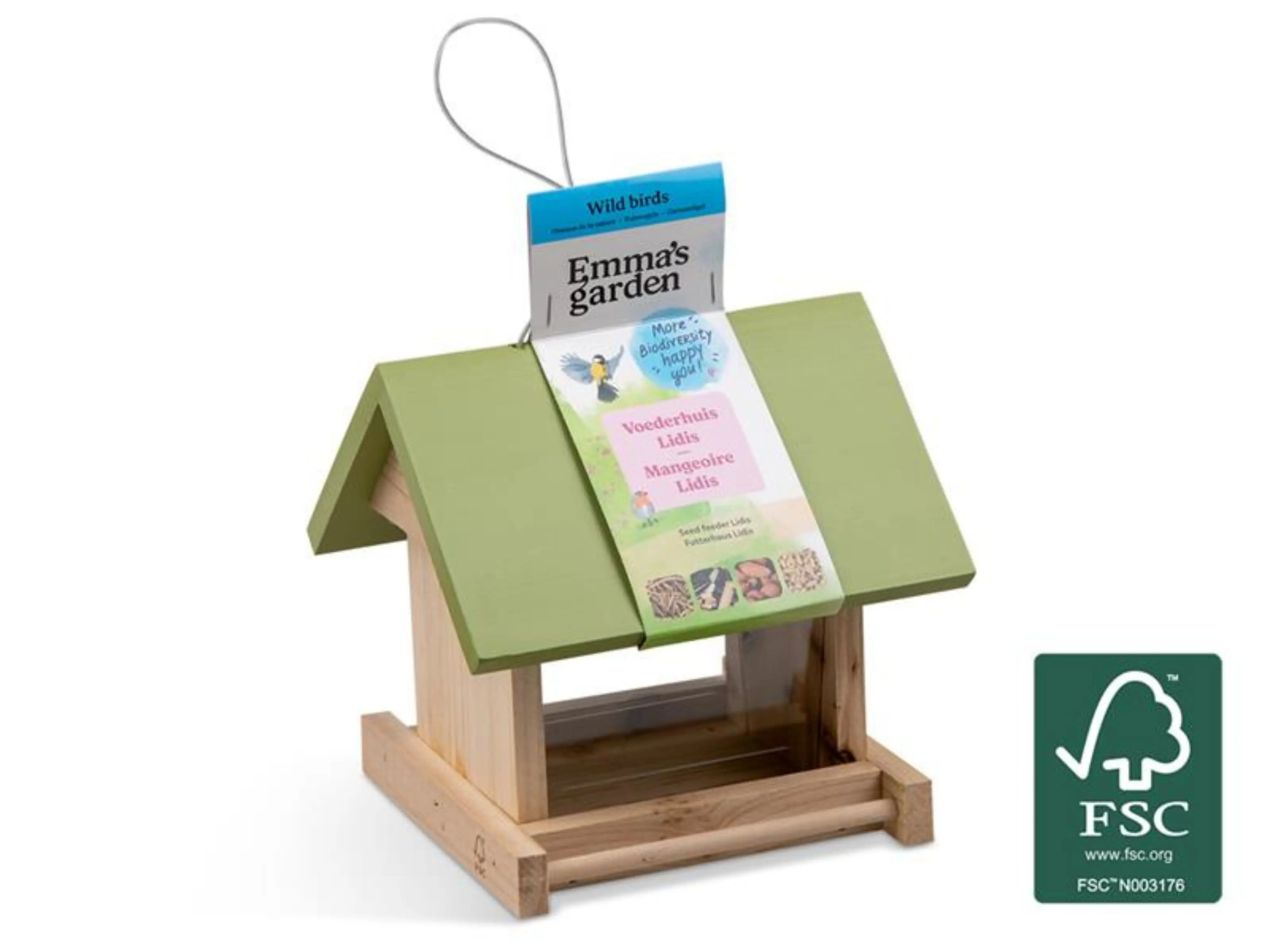 Gemaakt van duurzaam, verantwoord geproduceerd hout, is dit voederhuis stevig, weerbestendig en geschikt voor langdurig gebruik in de tuin. Het compacte ontwerp is perfect om kleine vogels een veilige voederplek te bieden.