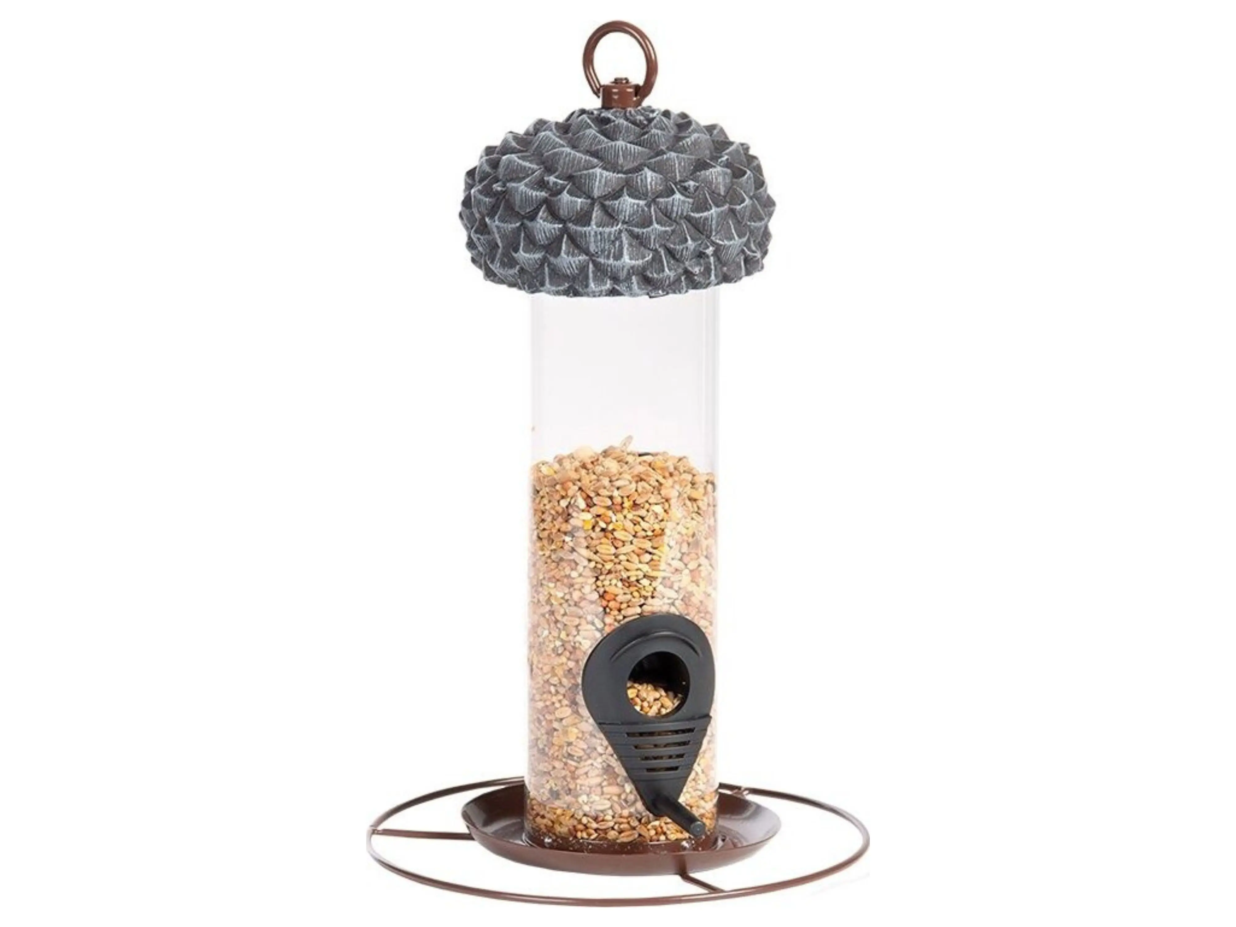 Deze originele voedersilo is niet alleen een praktische voeroplossing voor tuinvogels, maar ook een echte decoratieve blikvanger in je tuin of op je balkon. De silo is bovenaan voorzien van een deksel in de vorm van een eikel, wat zorgt voor een natuurlijke, speelse uitstraling die perfect past in elke buitenomgeving.