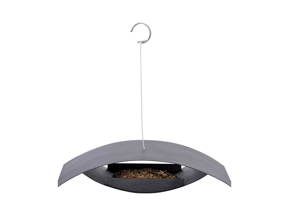 Deze moderne voederschaal van Esschert Design is een echte blikvanger in de tuin, op het terras of op het balkon. Het ontwerp is open aan beide zijkanten. De bovenzijde van de schaal heeft een ruime oversteek over de onderste schaal, waardoor het voer altijd droog blijft, zelfs bij regen. Dankzij de twee opstaande randen aan de onderkant kan het voer niet uit de schaal vallen.