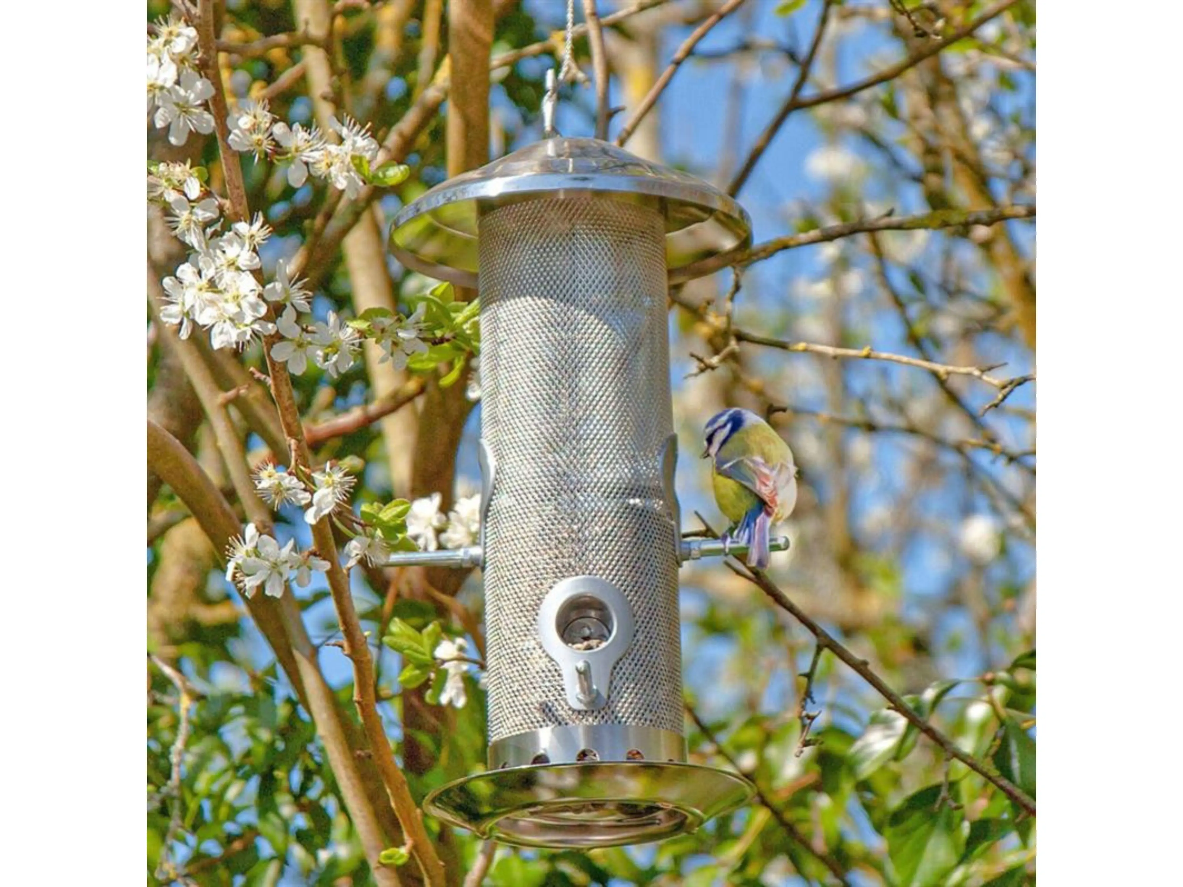 Dit roestvrij stalen vogelvoederhuis is ontworpen om vogels makkelijk te voederen. Bovendien is hij duurzaam dankzij het feit dat hij roestvrij blijft.