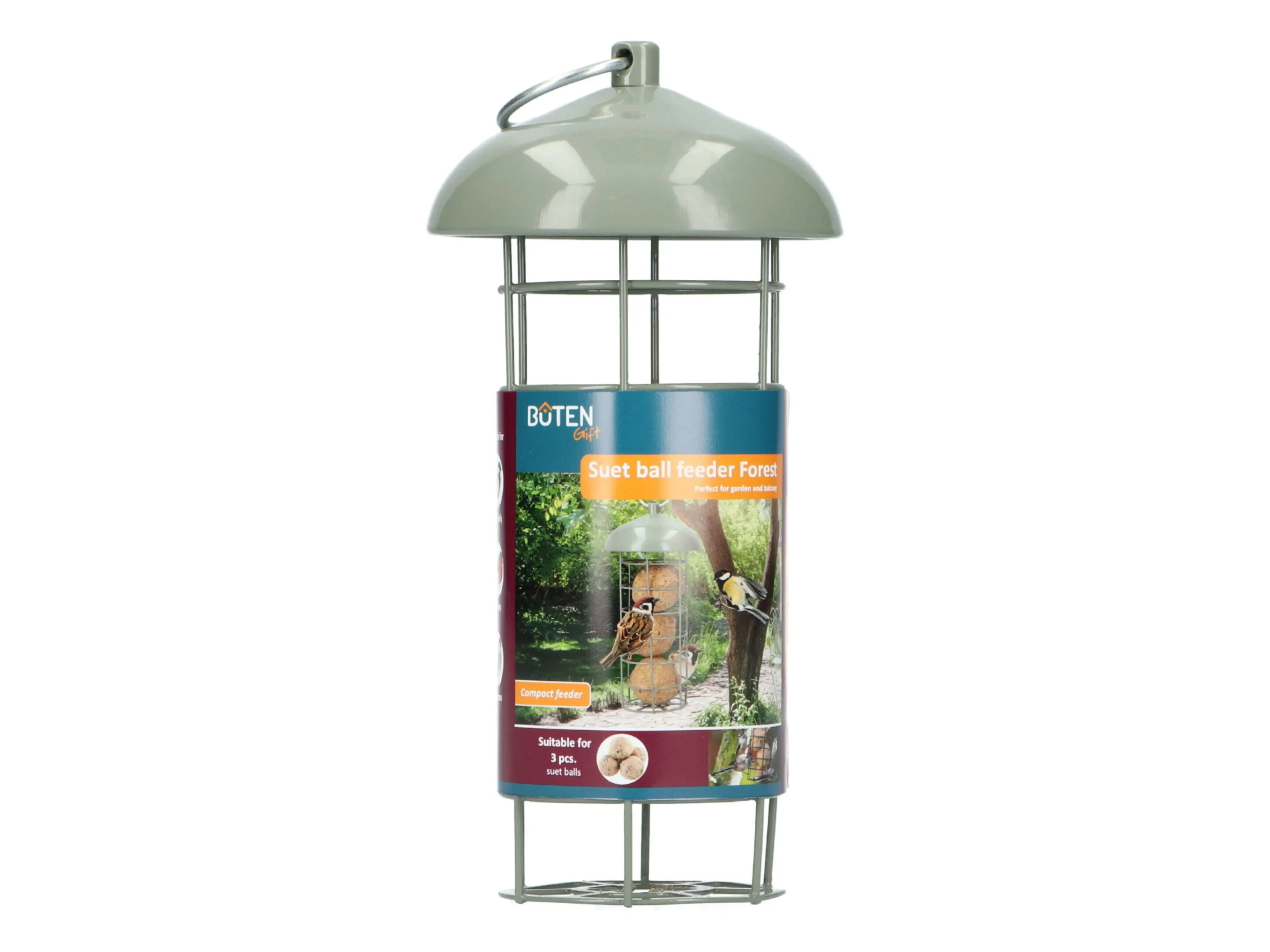 Met de Bûten Gift vetbol voedersilo Forest help je tuinvogels eenvoudig aan extra energie tijdens de winter. De silo is gemaakt van stevig materiaal en speciaal ontworpen voor vetbollen, zodat vogels veilig kunnen eten zonder dat de bollen eruit vallen.
