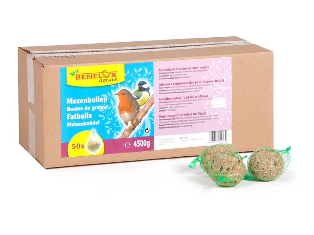 Granen en zaden zijn rijk aan vezels, eiwitten en vitamine B en de mezenbollen zijn verder verrijkt met vitamine E en mineralen. Ze bevatten een hoog vetgehalte en zorgen voor de energie die vogels in de winter broodnodig hebben om hun lichaam op temperatuur te houden. Mezenbollen zijn het ideale wintervoer om de vogels de koudste maanden door te helpen.