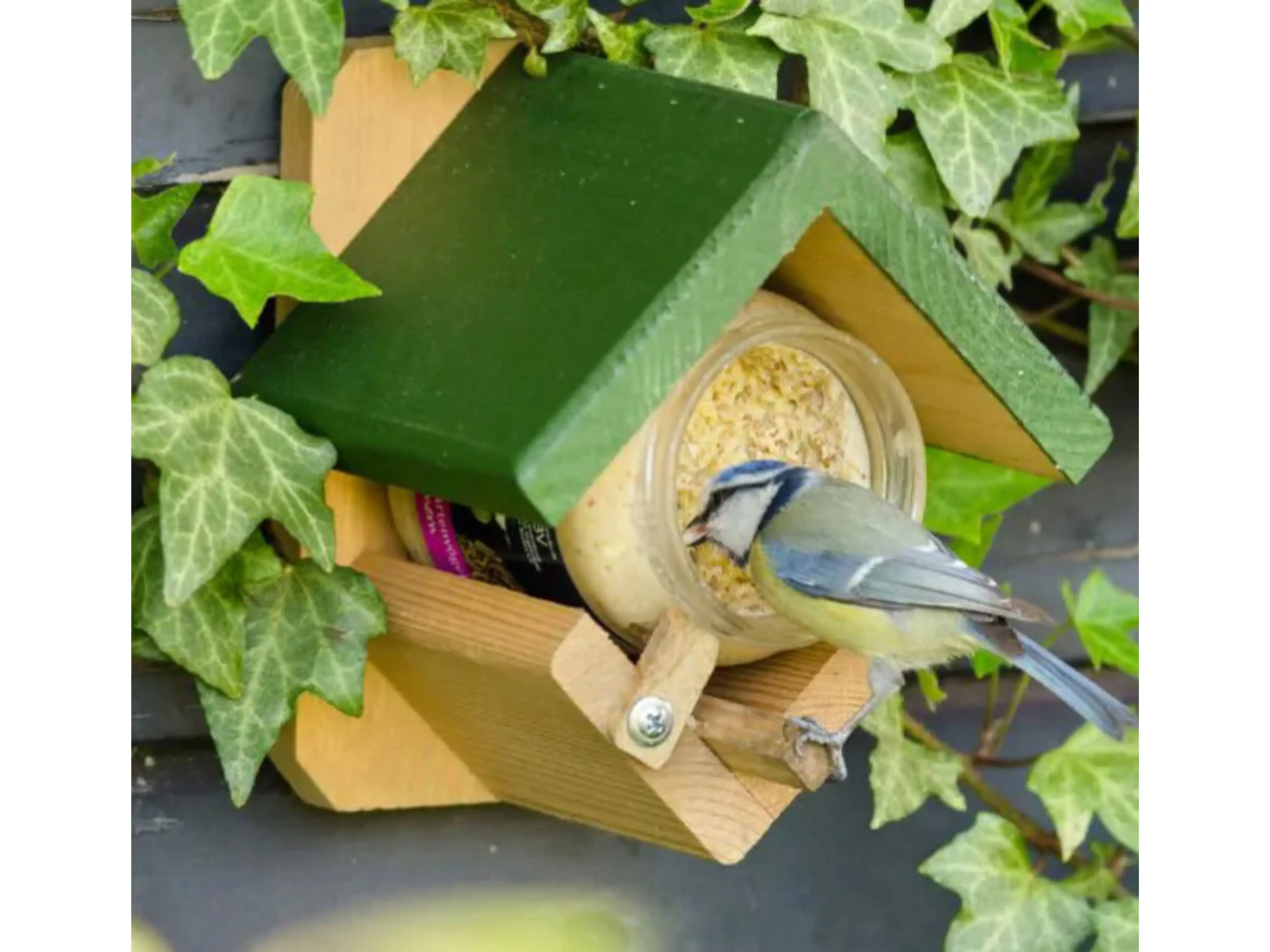 In onze speciale pindakaas voor tuinvogels voegen we geen zout toe. De glazen 'pindakaaspot' gevuld met pindavet is een ware energiebom voor diverse vogelsoorten.