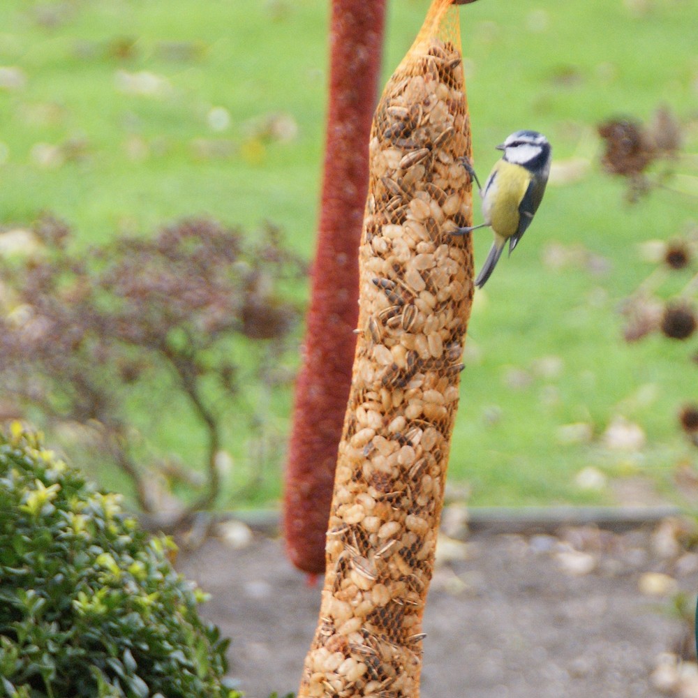 Een winterkrans met 750 gram voedingrijke zaden voor tuinvogels. Deze slinger vormt een belangrijke bron van energie om de tuinvogels doorheen de winter te helpen.