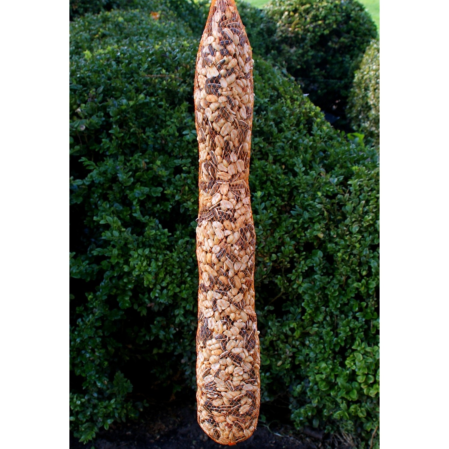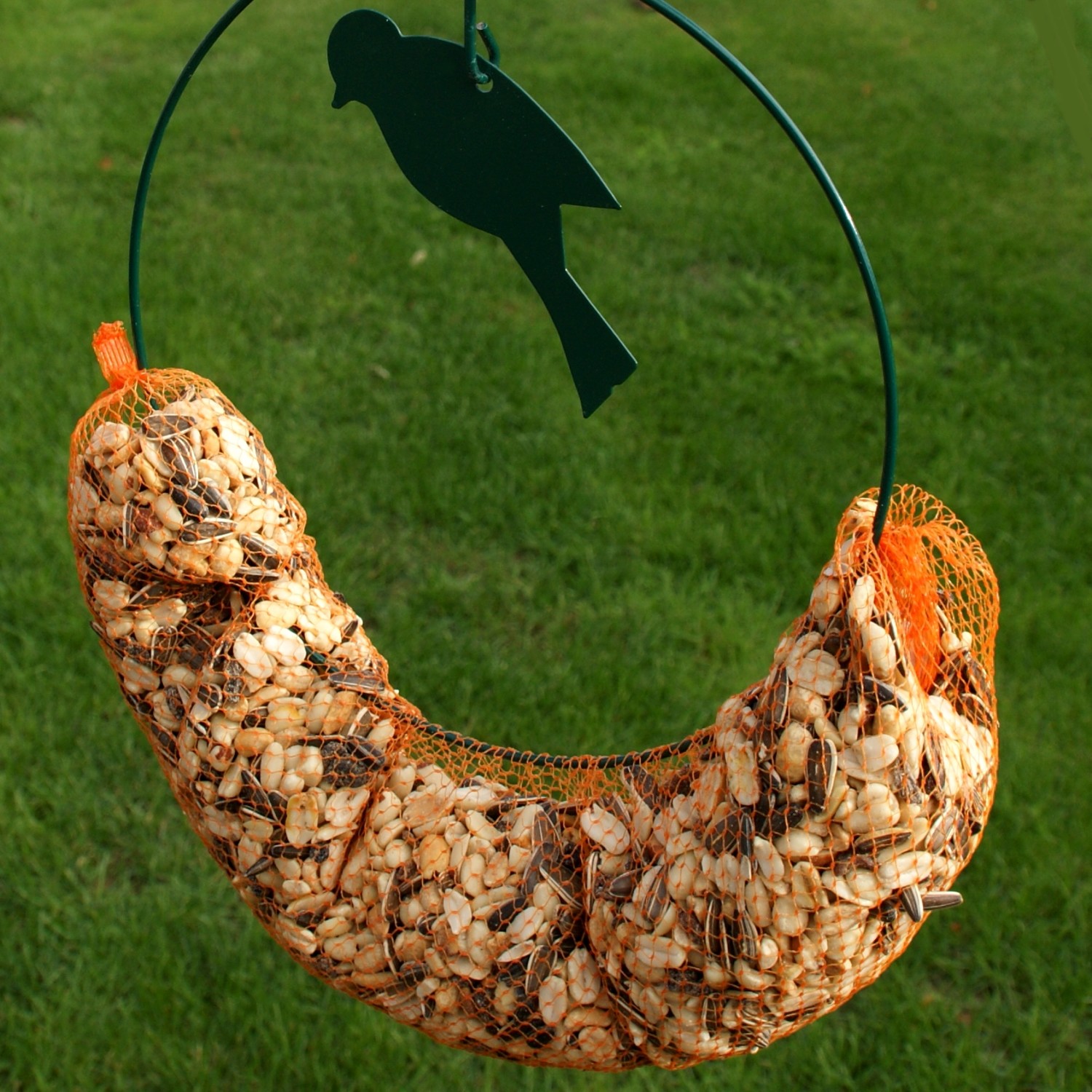 De krans zit boordevol zwarte zonnebloempitten, rozijnen en gepelde pinda's! Een lekkernij en gezonde voedingsbron voor alle tuinvogels.