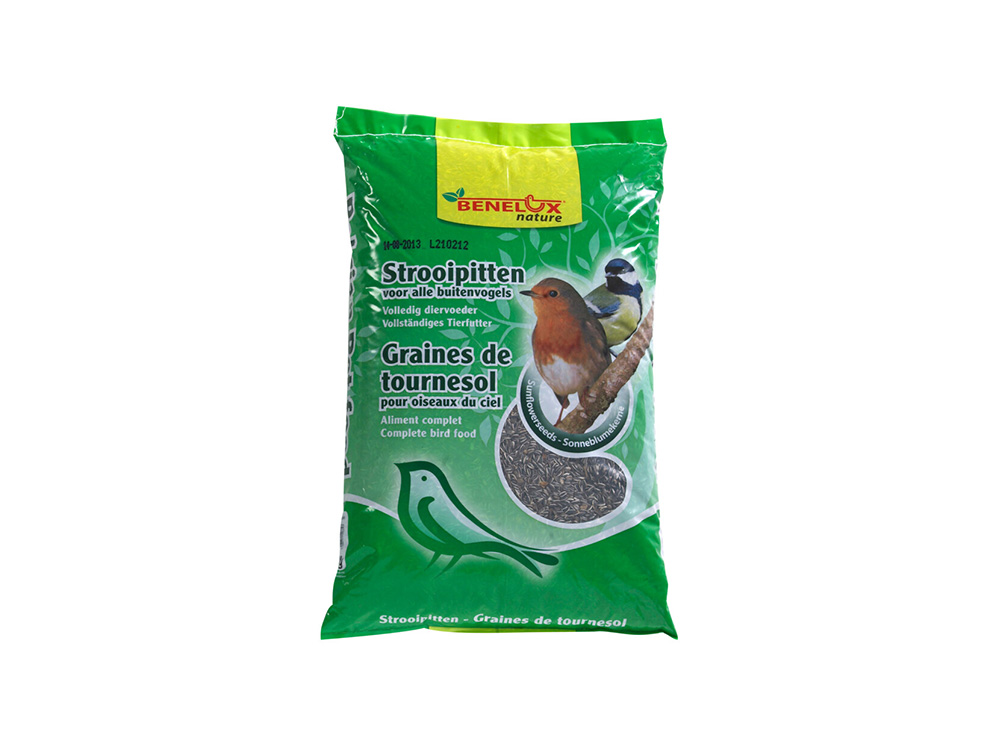 Zonnebloempitten zijn een welgekomen wintervoeding voor al onze tuinvogels. Biedt ze aan in grondvoederschalen of in zadensilo's en geniet van de smullende tuinvogels.