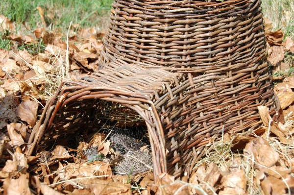 Dit wilgentenen egelnest kan met bladafval of hooi worden opgevuld en afgedekt om er een gezellig en warm bedje van te maken. Plaats het op een rustige en beschutte plek in de tuin en hou de ingang ten allen tijde vrij.