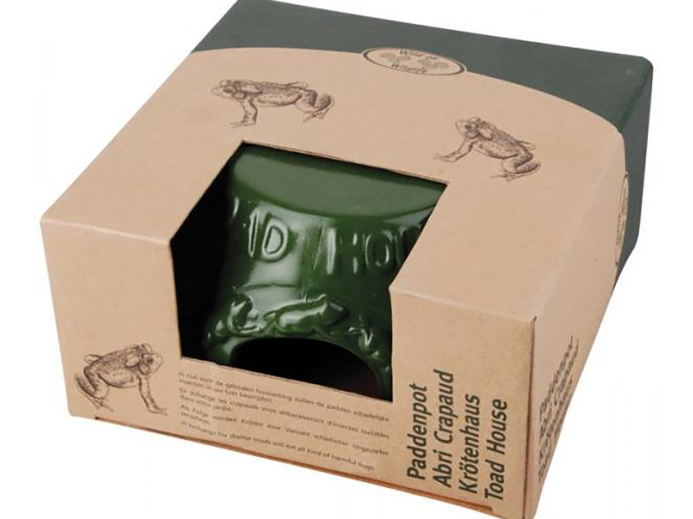 Deze donkergroene paddenpot van keramiek is speciaal ontworpen om nuttige tuinbewoners zoals padden en kikkers een veilige schuilplaats te bieden en ze naar je tuin te lokken. In ruil voor de geboden huisvesting zullen de kikkers en padden je helpen de slakken en schadelijke insecten (wormen, larven, spinnen, kevers, steekmuggen, vliegen, mieren,...) te bestrijden. Per dag eten ze gemakkelijk 50 insecten.