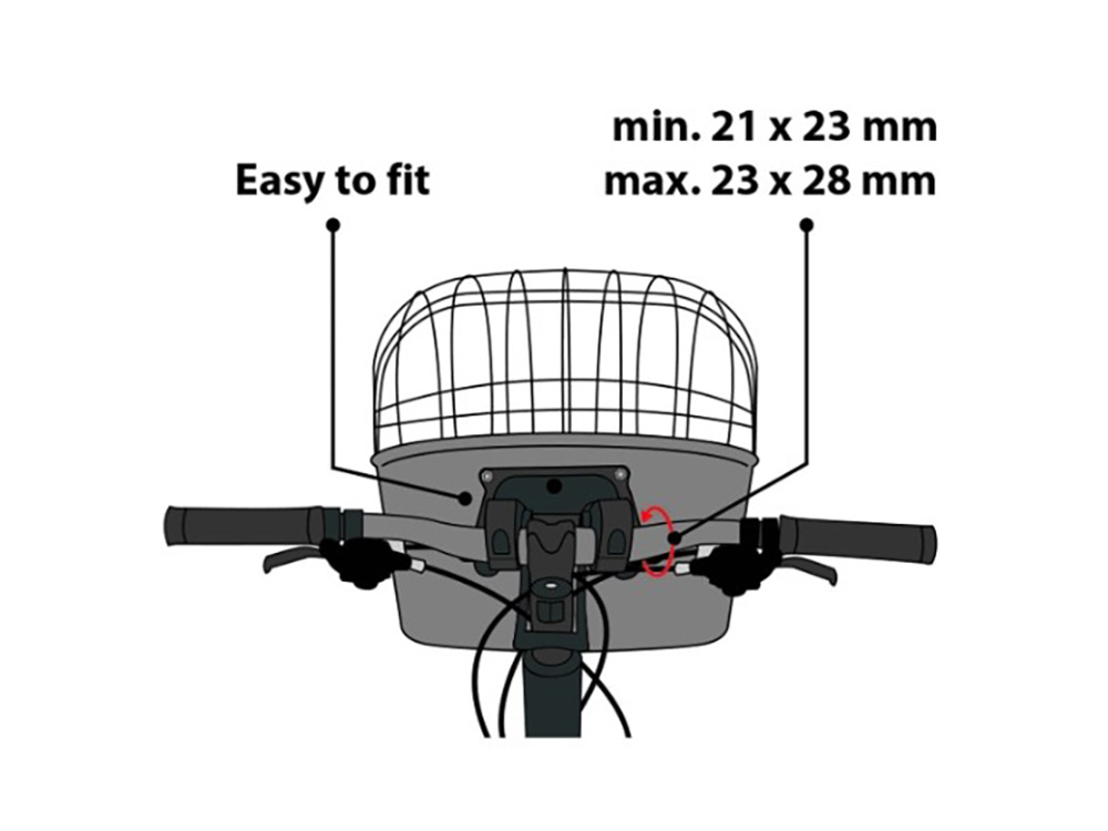 Met het meegeleverde ophangsysteem kan je de mand stevig aan het stuur bevestigen.