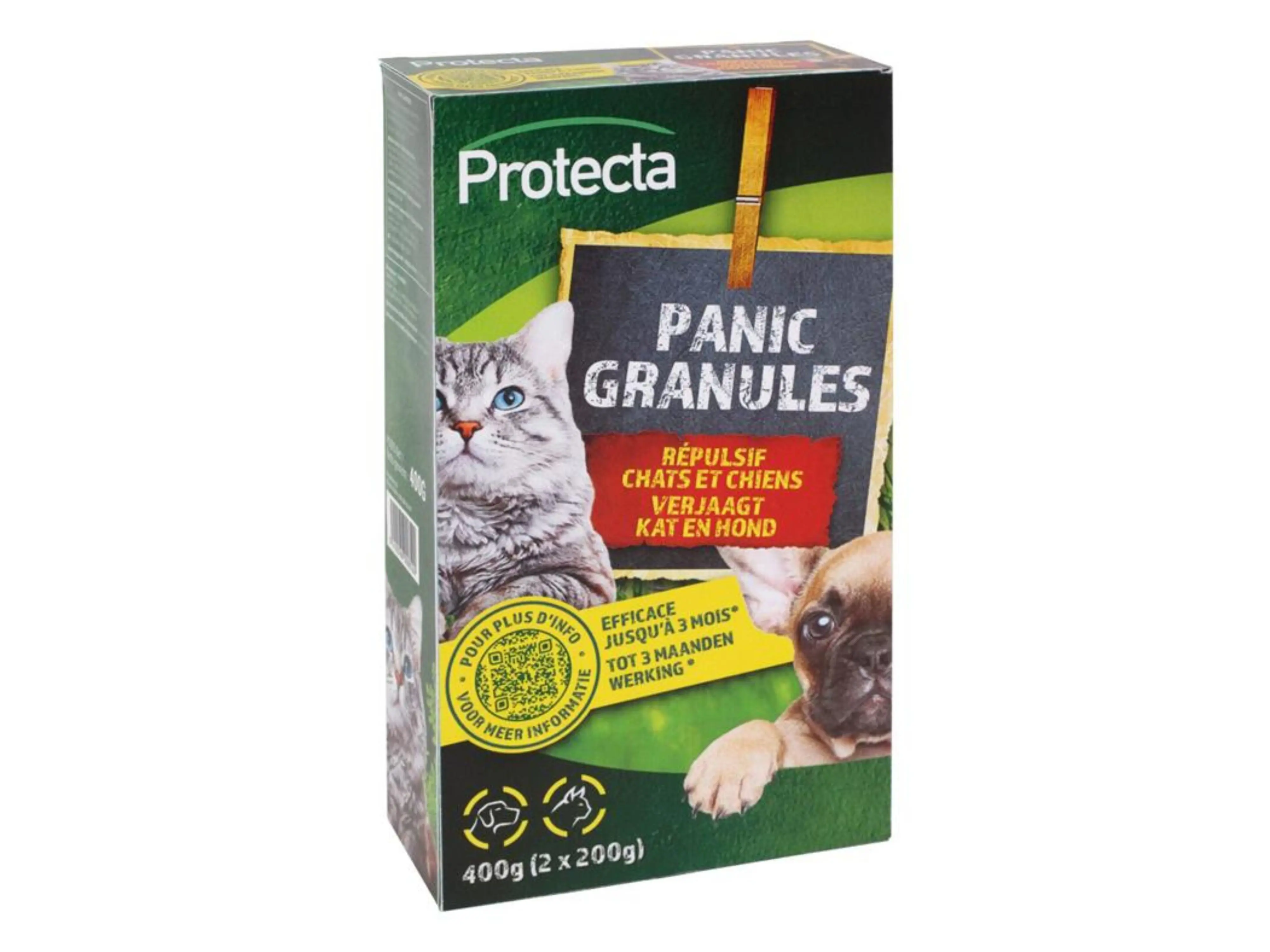 Panic Granules van Protecta is een afweermiddel in korrelvorm om ongewenste honden en katten effectief en permanent weg te houden van hun gebruikelijke markeerpunten (urinemarkering, uitwerpselen, krassen en beten). Met de inhoud kan je tot 20 markeerpunten beschermen!