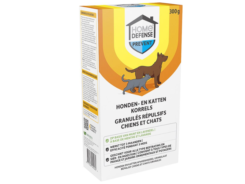 Bestel de Home Defense honden- en kattenverjager korrels en geniet van een frisse, rustige en diervrije tuin – zonder overlast van honden en katten.
