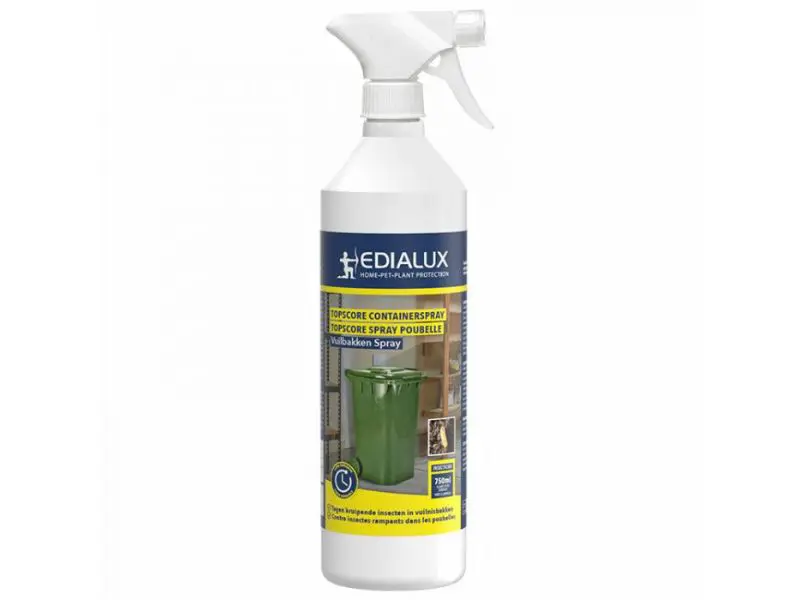 De gebruiksklare containerspray van Edialux is uitermate geschikt om allerhande kruipende insecten in en rond vuilnisbakken en afvalcontainers te bestrijden. Dit product blijft tot 3 maanden werkzaam op niet-poreuze oppervlakken.