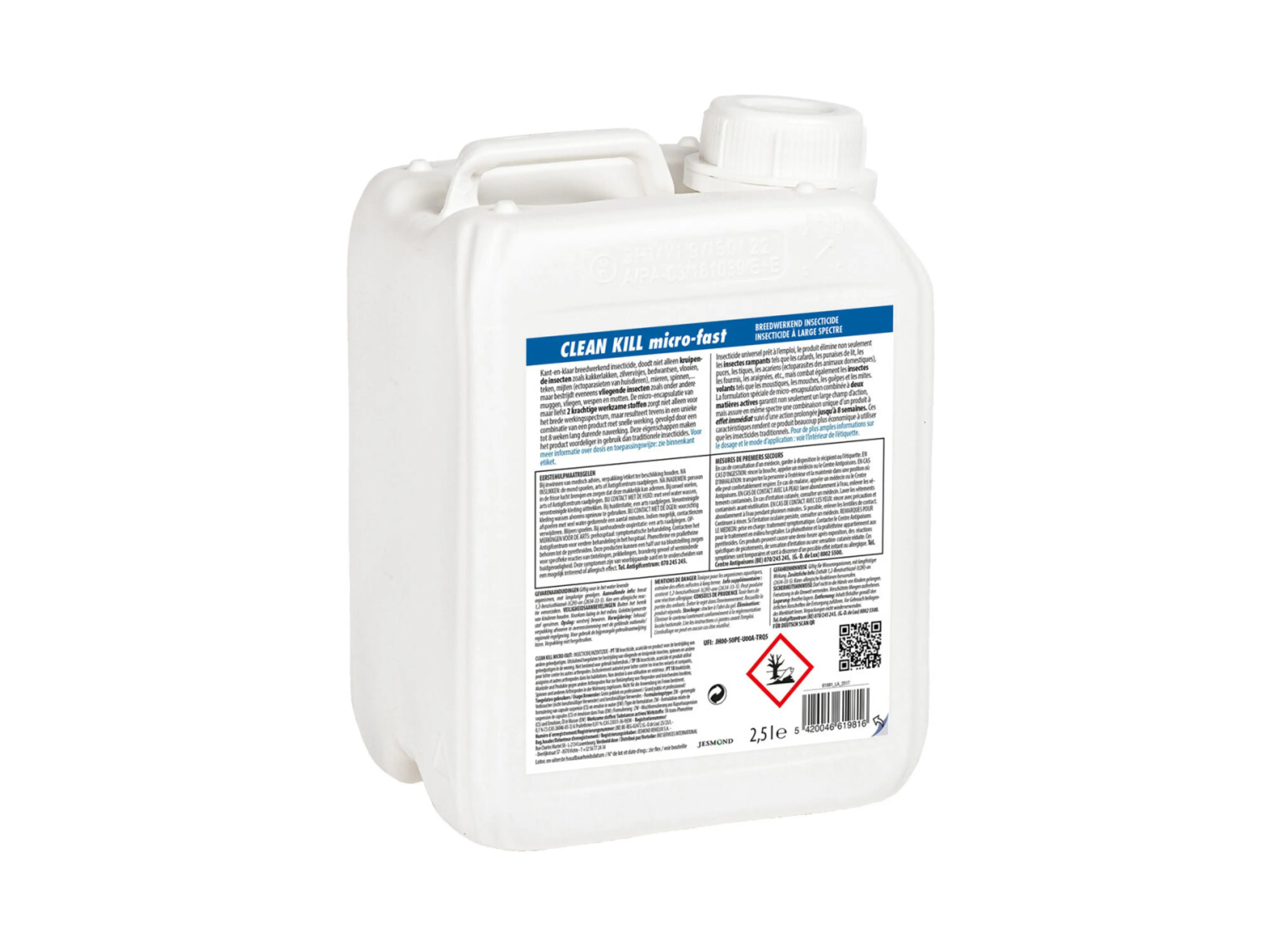 Clean Kill Micro-Fast is de nieuwe naam voor het bekende Bio Kill Micro-Fast. Hoewel de verpakking en naam zijn veranderd, is het product precies hetzelfde gebleven. De vertrouwde samenstelling en de krachtige werking die je gewend bent, zijn ongewijzigd - alleen het jasje is nieuw!