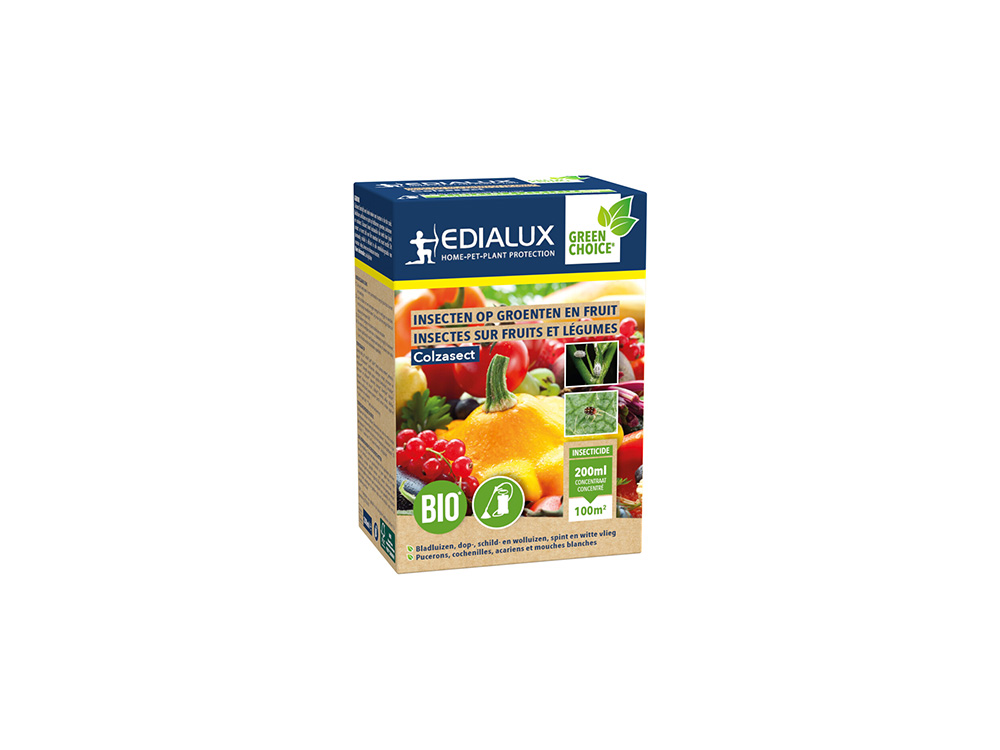Colzasect is een biologisch middel en bestrijdt een brede waaier aan insecten in de tuin zoals bladluizen, wolluizen en spint op fruitbomen en groenten.