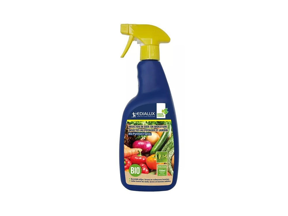 Met dit 100% natuurlijk product kan je jouw sierplanten, groenten en fruit beschermen. Bio-Pyrinsect spray bevat een combinatie van natuurlijk pyrethrum en koolzaadolie en bestrijdt een brede waaier van insecten zoals bladluizen, wol-,dop-, en schildluizen, maar ook witte vlieg, tripsen en mijten.